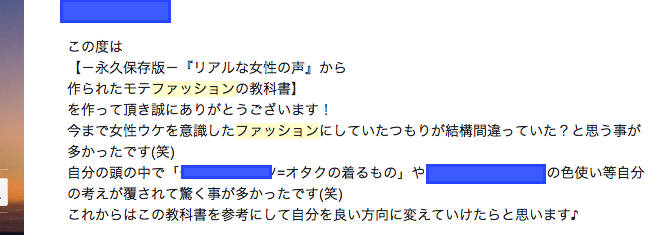 実際に”モテファッションの教科書”を購入して頂いた方からの感想です